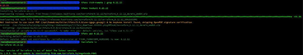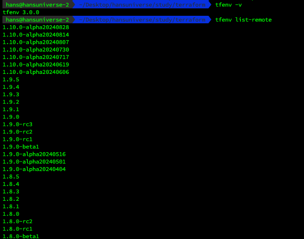 tfenv 를 이용해 terraform 버전을 변경하는 과정입니다.