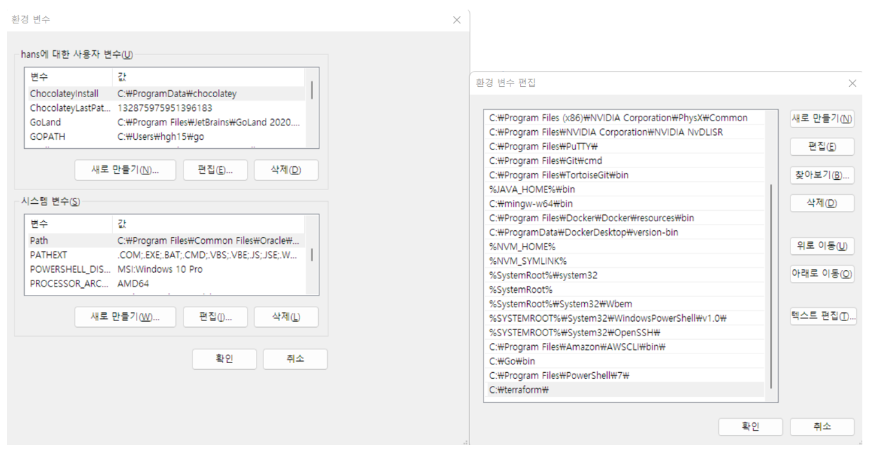 시스템 변수 Path에 C:\terraform\ 추가